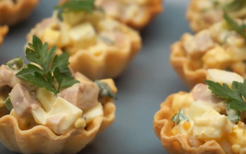 Кроме мясных и овощных закусок на новогоднем столе обязательно должны быть рыбные. Корзинки с печенью трески — прекрасный вариант для праздничного стола. Это не затратное и лёгкое в приготовлении блюдо, которое обязательно понравится гостям.